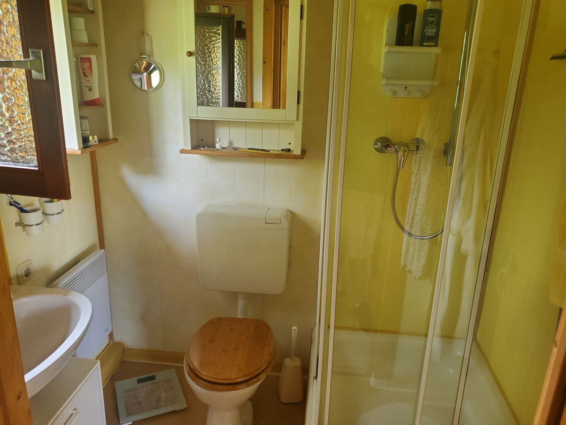 Das Haus verfügt über 3 Zimmer. Ein Wohnzimmer, ein Schlafzimmer sowie ein kleines Kinderzimmer mit Etagenbett. Weiterhin über eine separate Küche mit Waschmaschine und ein Duschbad. An der Seite des Hauses befindet sich noch ein Anbau mit 5qm Fläche, welcher derzeit als Schuppen genutzt wird.