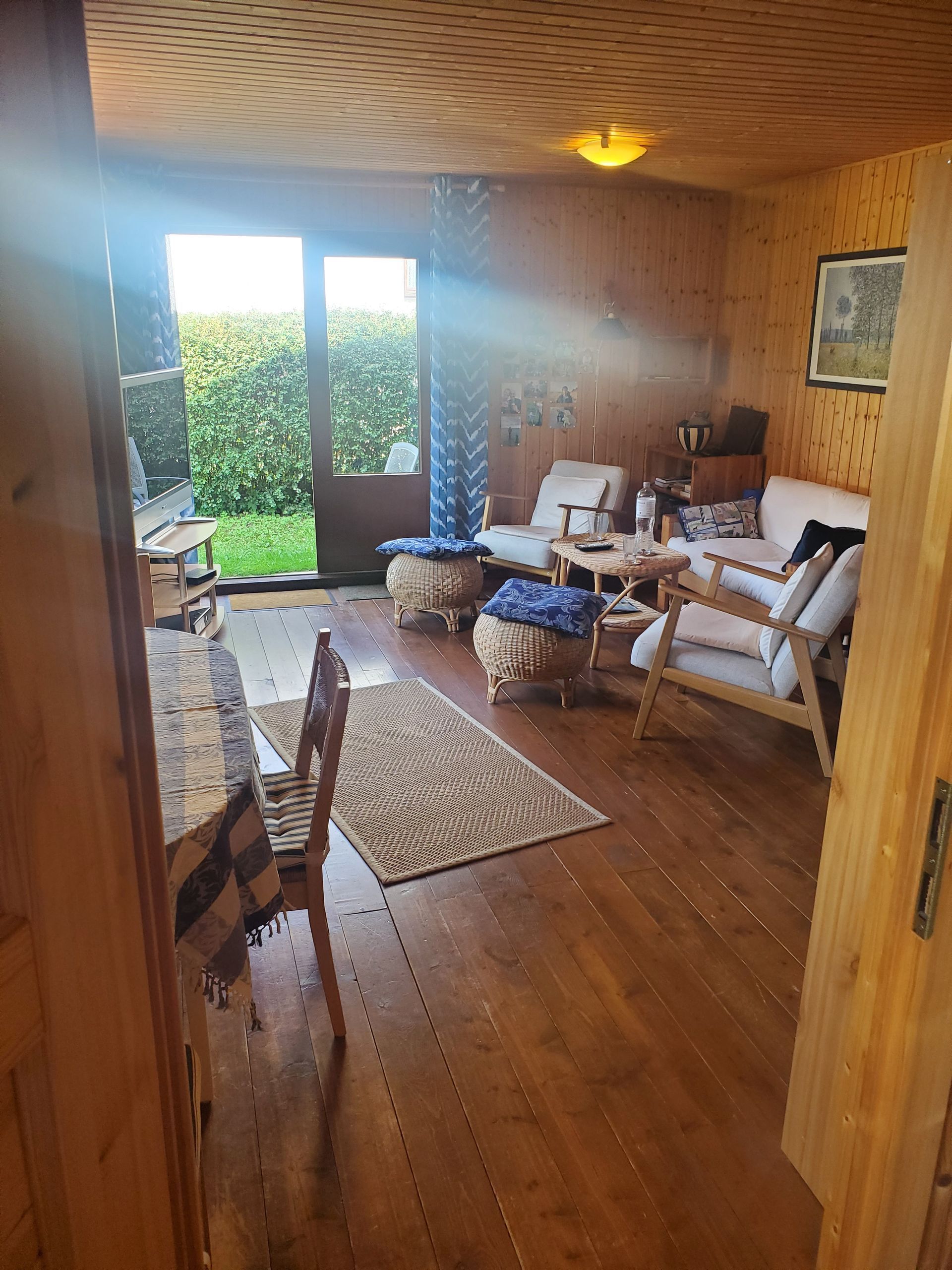 Der warme, typisch nordische Innenausbau aus Holz erhöht den Wohlfühlfaktor. Dadurch, dass bislang keine Farbe aufgetragen wurde, kann der natürliche Holzfarbton beibehalten oder auf Wunsch farblich neugestaltet werden. Die Einrichtung wird mit verkauft und ist geschmackvoll und zweckmäßig.